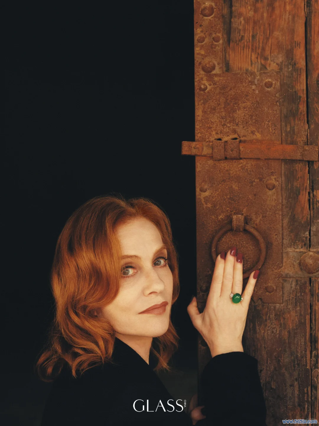 正红指甲油,祖母绿翡翠,红铜色头发和铁锈色大门相互呼应。绝美!